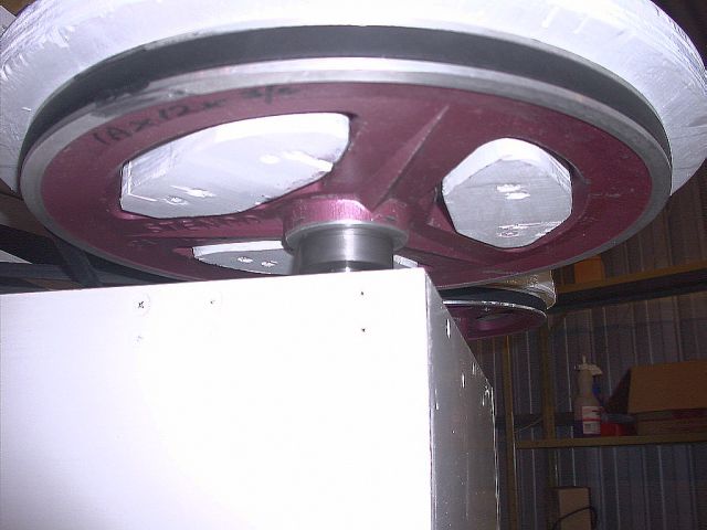 This is a view beneath the turntable showing the three dogs I've screwed onto the platter. When it's taken off for clening the platter will sit level on the bench.
