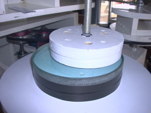 80 grit with a turntable speed of 72rpm and an eccentric speed of 21rpm.