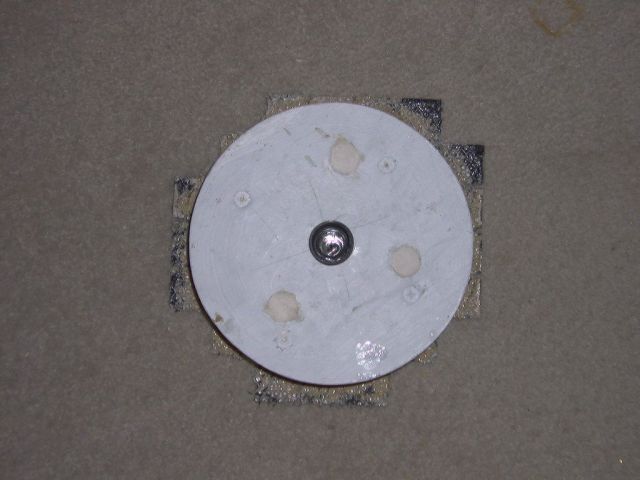 This is the 6.4" tool before grinding the edges round with the diamond wheel. After the 5" failed to spin correctly, I assumed this would not work either. I thought "Bugger It!" Nothing ventured, nothing gained so I put this on the machine with all those overhanging tiles (definitely not symmetrical and balanced). Running low on #80 grit I used #60 grit to see if it worked. It spun beautifully!!!!!!!! I was amazed to see the thing spinning with no grabbing as the water and grit wore down as well.